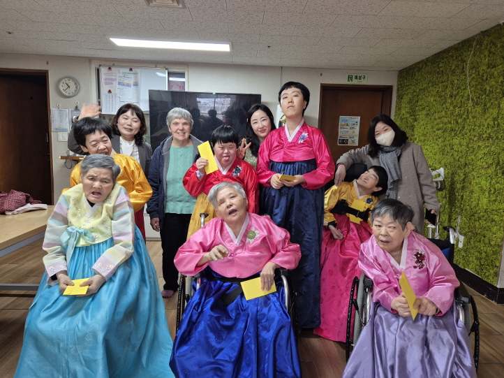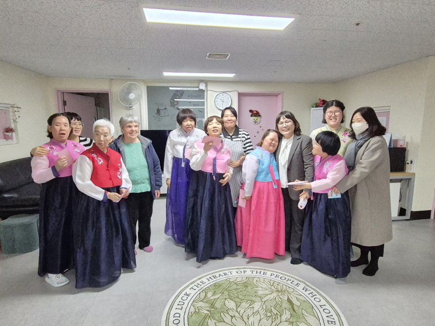 고운 한복을 차려입은 이용인들의 모습은 그 자체로 명절 분위기를 물씬 느끼게 했습니다. 정성스럽게 올린 세배와 웃음 가득한 인사 속에서 모두가 새해의 기쁨을 함께 나누었습니다. 이용인들에게 세뱃돈을 전달하며 응원의 마음도 전했고, 각 생활동에서는 방마다 준비한 명절 음식을 나누며 흥겨운 시간을 더했습니다.