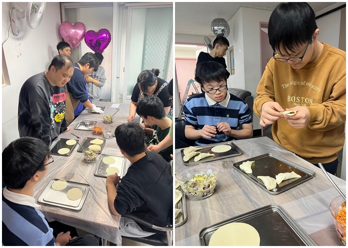 명절의 묘미는 역시 함께 만들어 먹는 음식이지요! 각 생활동에서는 직접 다양한 전을 부치고 만두도 빚으며 명절 준비를 함께했어요. 지글지글 전 부치는 소리, 고소한 냄새가 생활동 가득 퍼지는 그 순간에는 모두 환하게 웃음을 지었어요. 직접 만들어서 함께 먹는 음식이라 그런지, 맛도 두 배, 행복도 두 배였답니다.
