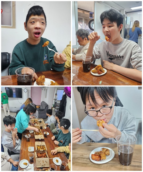 명절을 더욱 풍성하게 만들어 주신 분도 계세요. 소망동과 사랑동을 꾸준히 응원해 주고 계신 서석민 후원자님께서 이번 설을 맞아 따뜻한 마음과 함께 치킨을 보내주셨답니다! 덕분에 신나는 치킨 파티가 열렸어요. 바삭바삭한 치킨 한 조각을 손에 들고 환하게 웃는 모습들이 얼마나 행복해 보이던지요. 서석민 후원자님의 따뜻한 마음이 고스란히 전해진 명절이었습니다. 진심으로 감사드려요^^