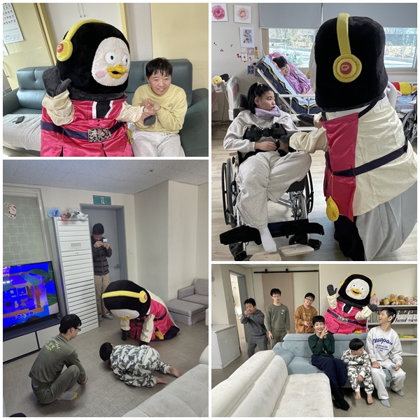 ![]() ◆한복 입은 펭수와 함께한 특별한 세배 명절의 흥을 한껏 더해주신 분들도 있었어요! 다솜나눔봉사단에서 직접 방문해 주셨는데, 놀랍게도 한복을 곱게 차려입은 펭수와 함께 오셨답니다! 펭수의 등장에 생활동이 순식간에 웃음과 탄성으로 가득 찼어요. 함께 간식을 나누고 세배도 드리며 명절의 흥이 절로 올랐답니다. 명절 기간, 바쁘신 중에도 홀트 가족들을 만나러 발걸음 해 주신 다솜나눔봉사단 여러분께 진심으로 감사드려요. 덕분에 더욱 환하고 즐거운 설 명절이 되었습니다. ![]()