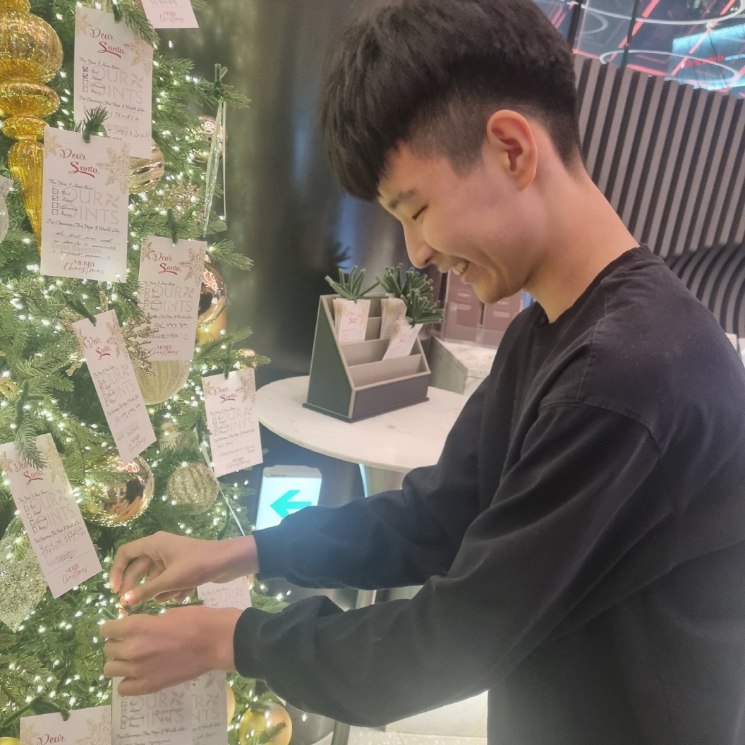 호텔 로비의 아름다운 트리 앞에서 아이들이 적어 내려간 소원카드처럼, |