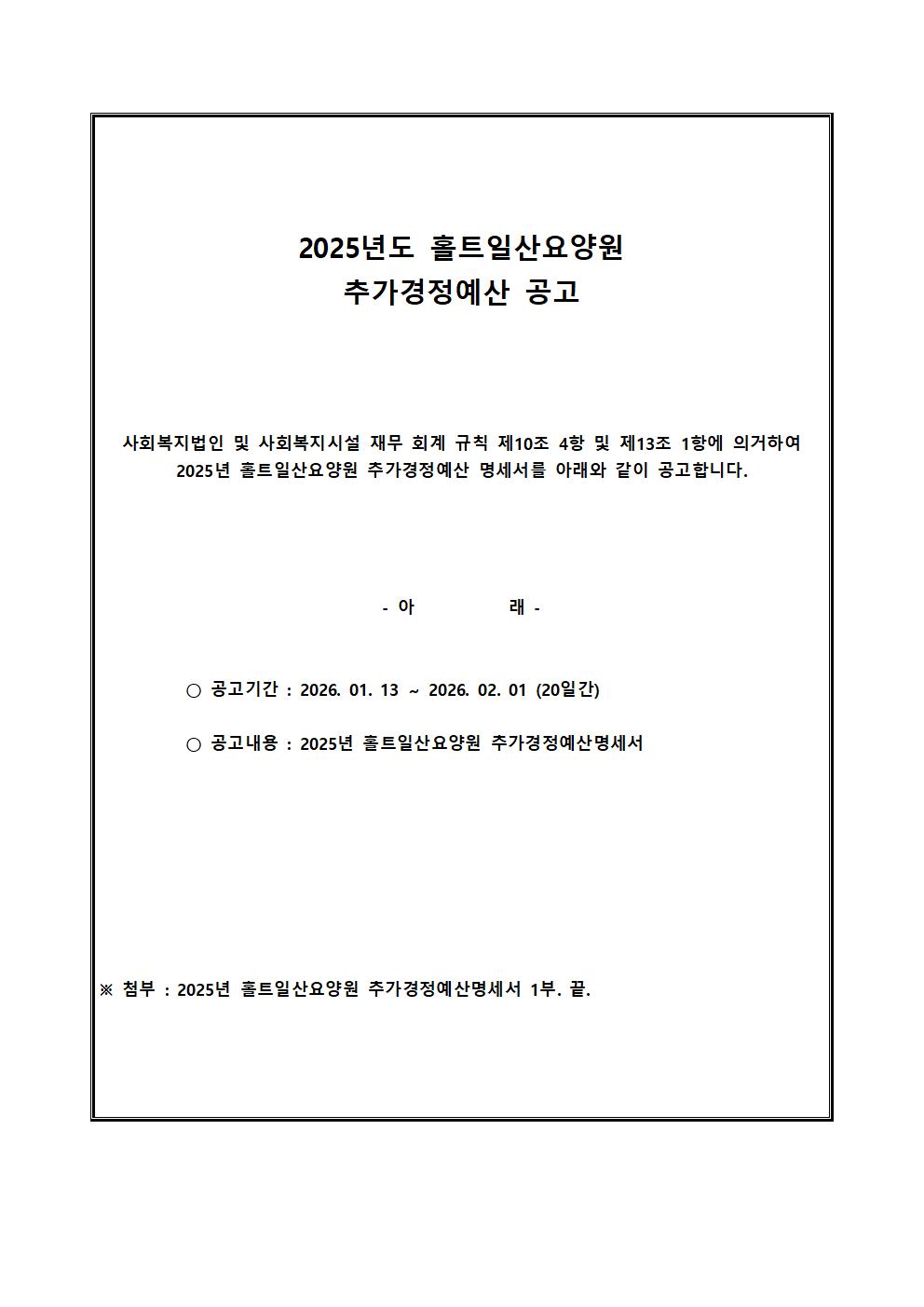 [홀트일산요양원] 2025년 추가경정예산 공고