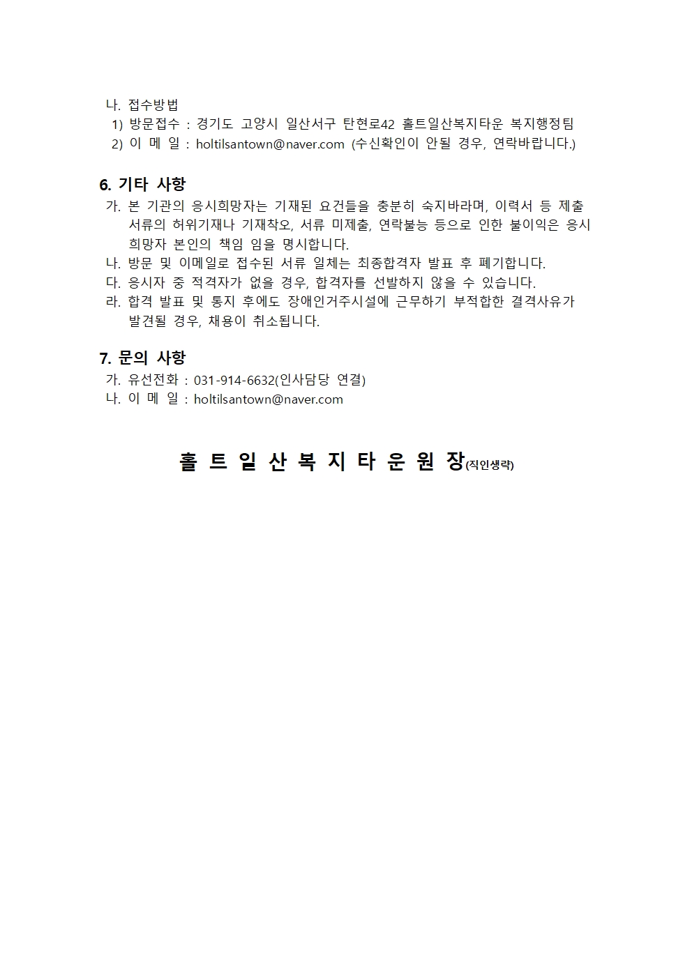 마감-[홀트일산복지타운] 직원(간호조무사) 모집공고