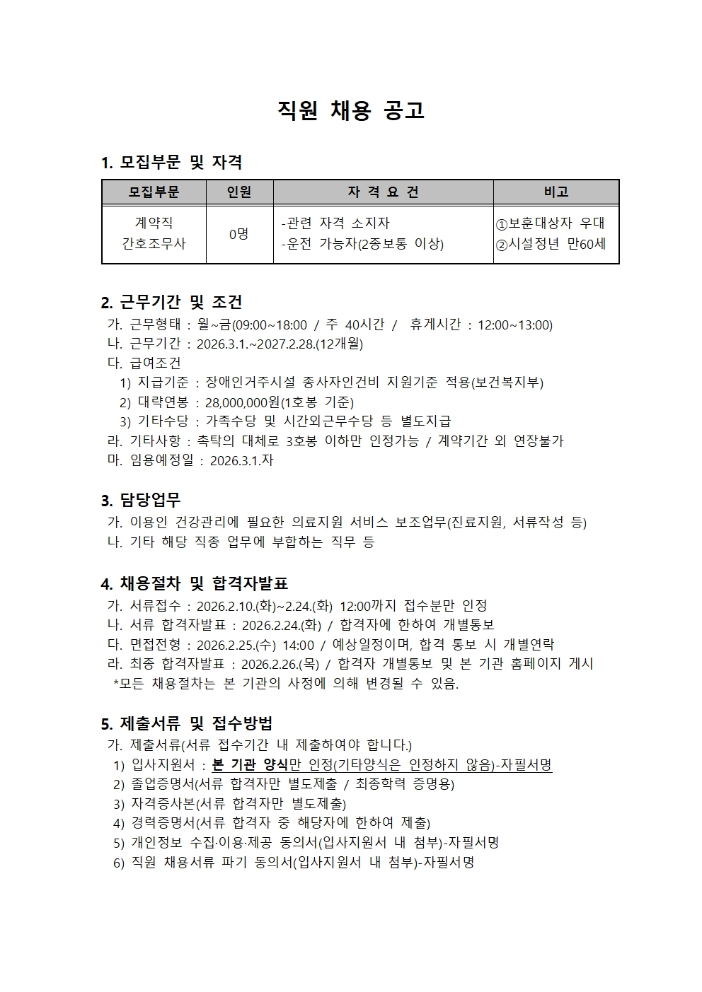홀트일산복지타운-계약직 간호조무사 지원서, 개인정보확인서.hwp(112 KB)