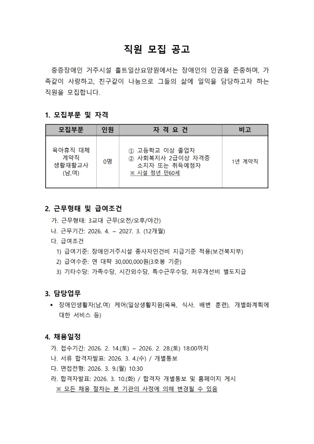 마감-[홀트일산요양원] 직원(생활재활교사) 모집공고