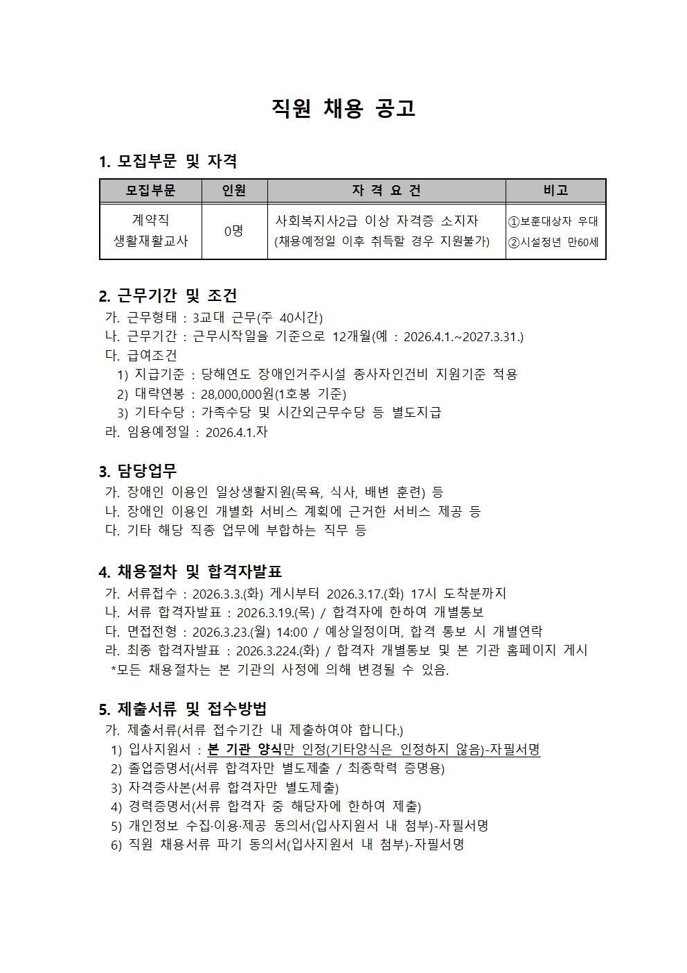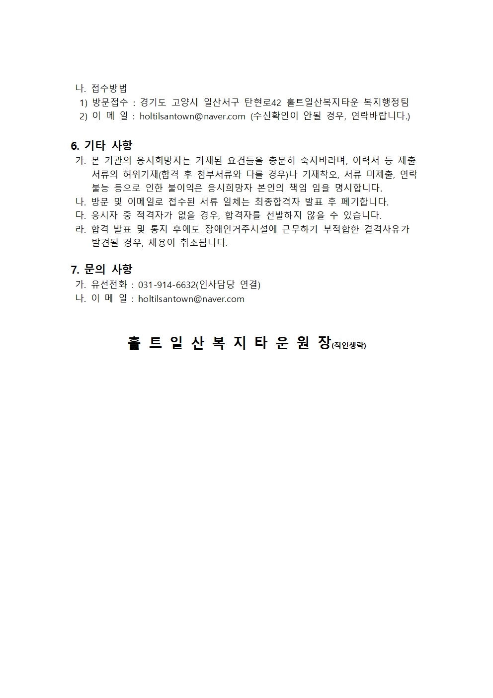 마감-[홀트일산복지타운] 직원(생활재활교사) 모집공고